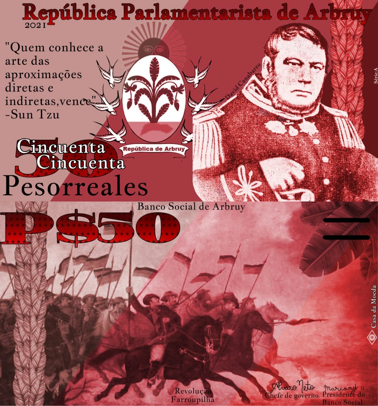 Cédula de P$ 50 da terceira família de Pesorreal. Arte: Marcony II.