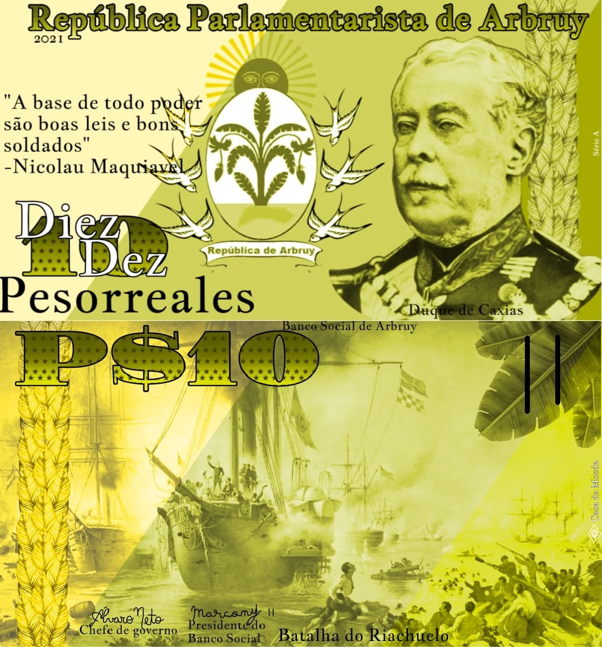 Cédula de P$ 10 da terceira família de Pesorreal. Arte: Marcony II.