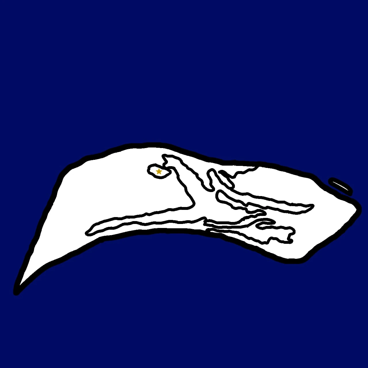 Capital: Faixas verde e amarela em homenagem ao "Guardião da Ilha Brasileira", Seu Zeca, brasiliano, à esquerda triângulo branco com metade do Sol de Mayo em azul.
