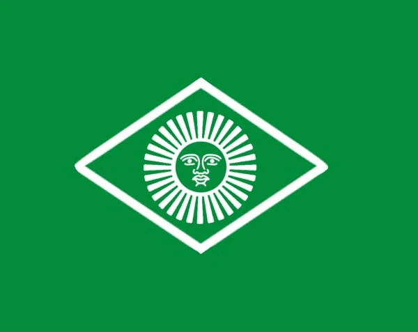 Distrito Uruguaio: Inspirada na bandeira do Uruguai, à esquerda triângulo branco com metade do Sol de Mayo em verde.