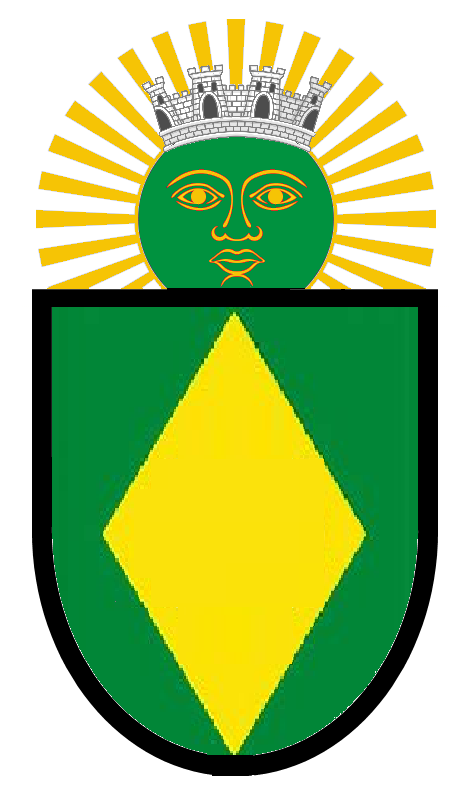 Distrito brasiliano: Coroa mural prateada de quatro torres sobre o Sol verde. Escudo ibérico com as cores e estilo da bandeira brasileira.