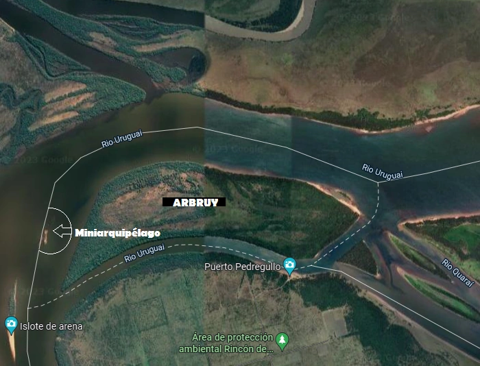 A "Ilha Brasileira" [atual Arbruy] está localizada na foz do rio Uruguai, entre os municípios de Barra do Quaraí (Brasil), Bella Unión (Uruguai) e Monte Caseros (Argentina). Dentro de seu território soberano fluvial, há uma pequena ilha ao nordeste a ao oeste o mini Arquipélago de Unión.